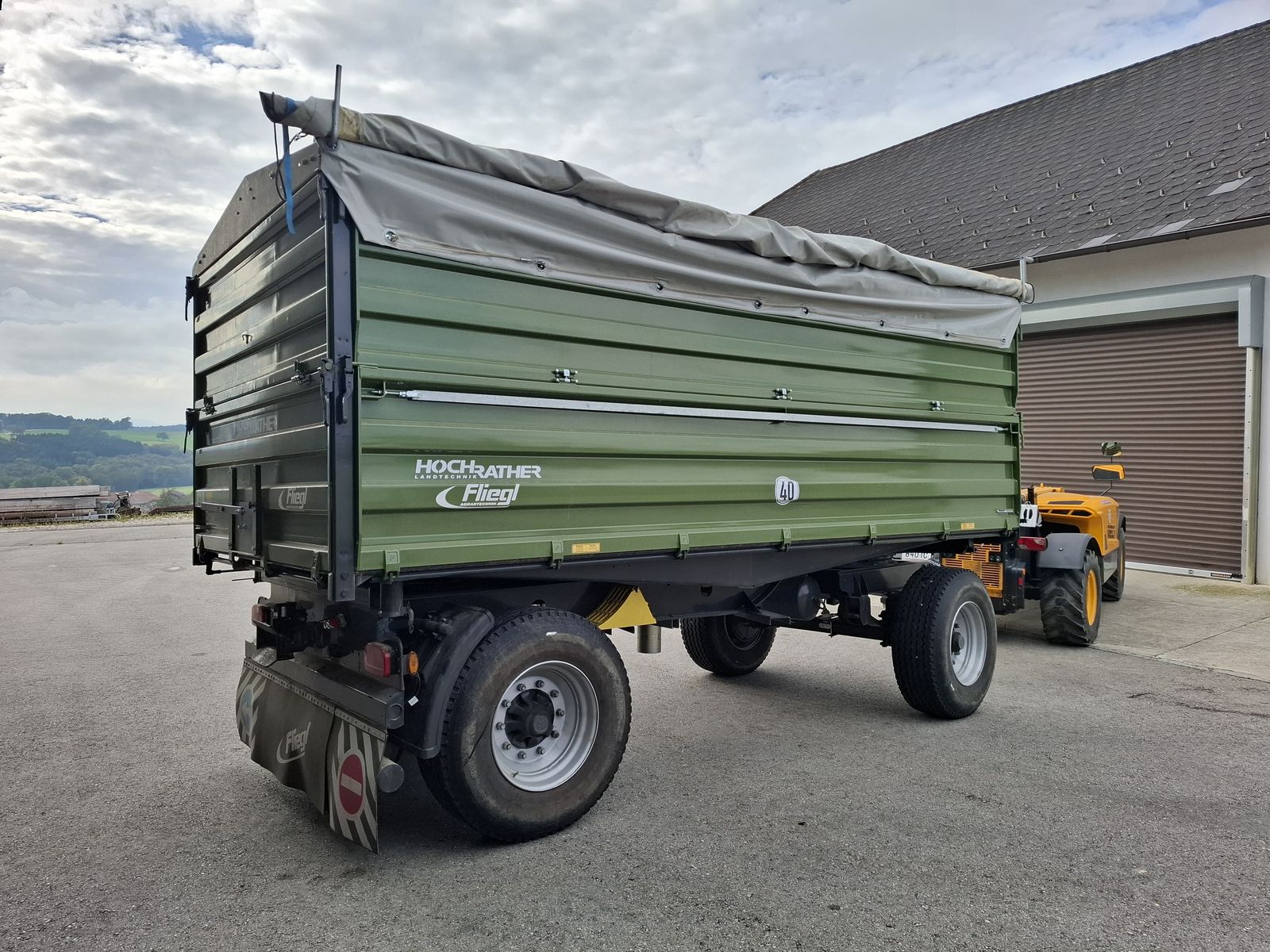 Fliegl Zweiachsdreiseitenkipper DK 180 + 18to zul. Gesamtgewicht + Y- Zuggabel + 2-Leiter Druckluftanlage mit ALB Regler + Bereifung 385/65R22,5 + Brückenmaß 5,05m x 2,42m + Grundbordwand 800mm + Aufsatzwand 800mm + Getreideschieber hinten + Zentralverriegelung links/rechts/hinten + Spannband links, rechts + Kette inkl. Spanner Bordwand mitte + BPW Achsen -Loch + Plane + Podest + 40km/h COC Pabiere + Automatische Anhängevorrichtung im Heck + Licht, Druckluft, Hydraulik im Heck + LED Beleuchtung Abgabe nach AbspracheZul. Gesamtgewicht (t): 18