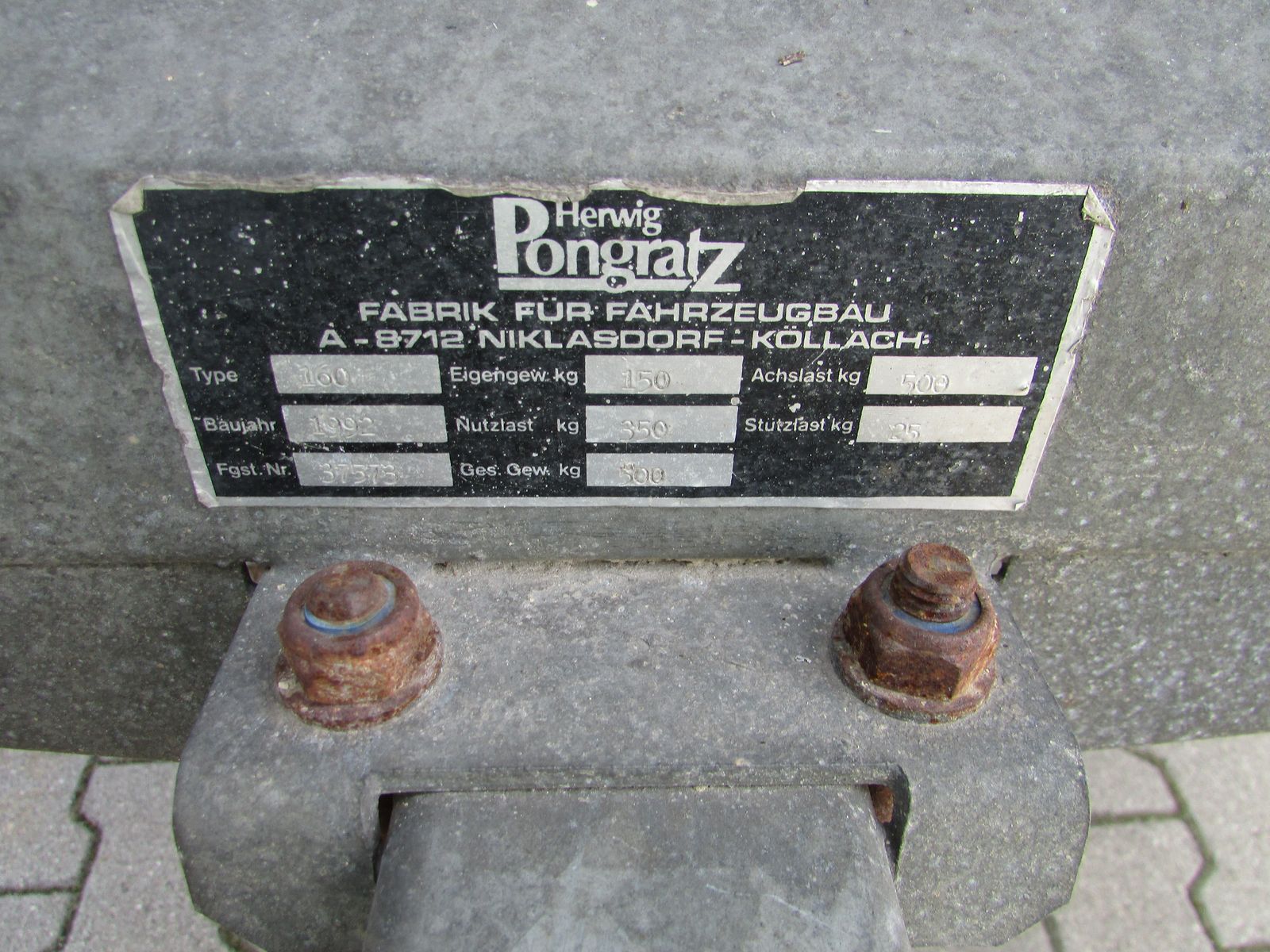 Pongratz PKW Anhänger PA 160/4 + Eigengewicht ca. 150kg + Höchst zulässiges Gesamtgewicht 500kg + Nutzlast 350kg + Brückenmaß 1,5m x 1,05m + Grundbordwand Stahl verzinkt ca. 40cm + Aufsatzwand Holz ca. 50cm + Boden Siebdruckplatte sehr guter Zustand + gültiges Pickerl + inkl. Typenschein + Autoanhänger ist in einem sehr gutem Zustand sofort einsatzbereit sofort verfügbarEigengewicht (kg): 150