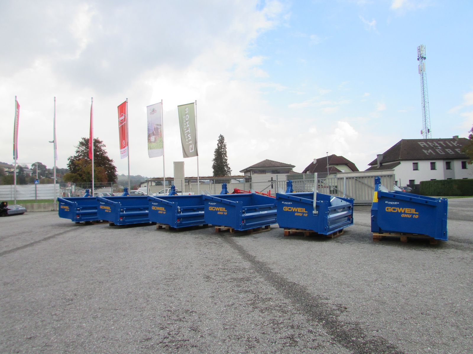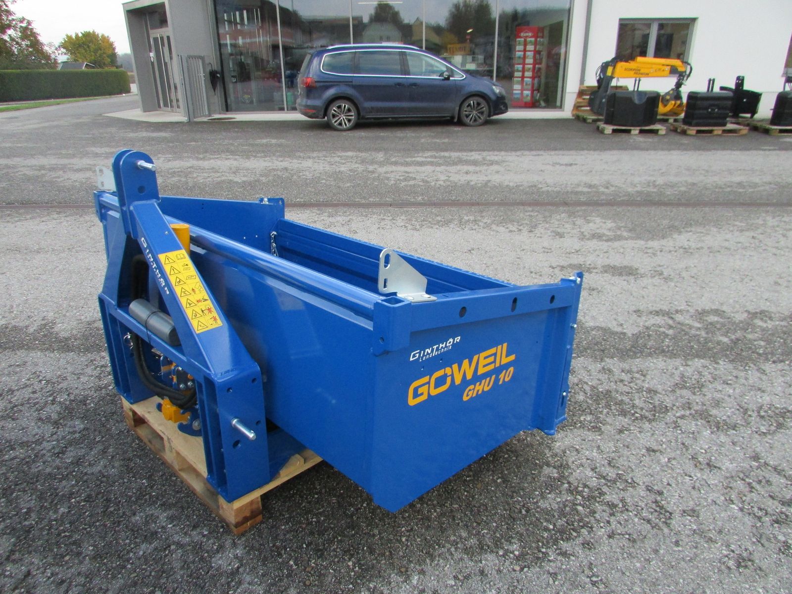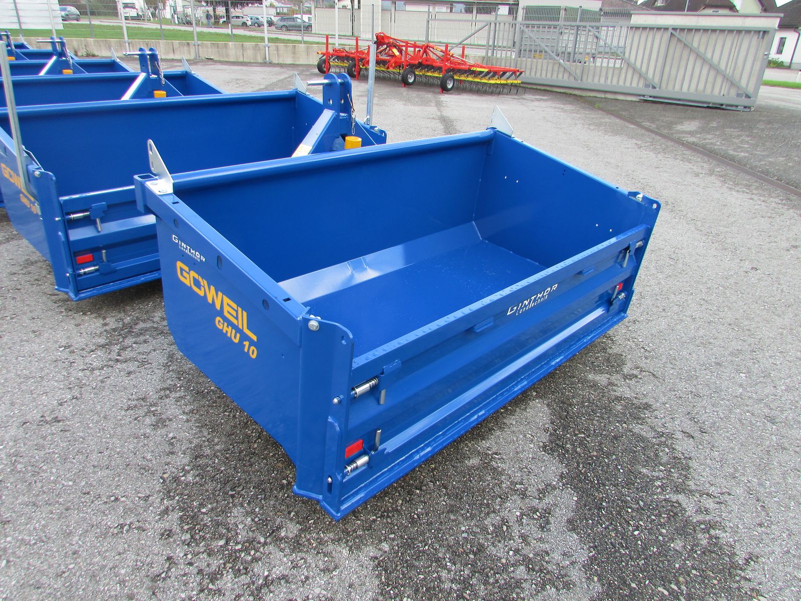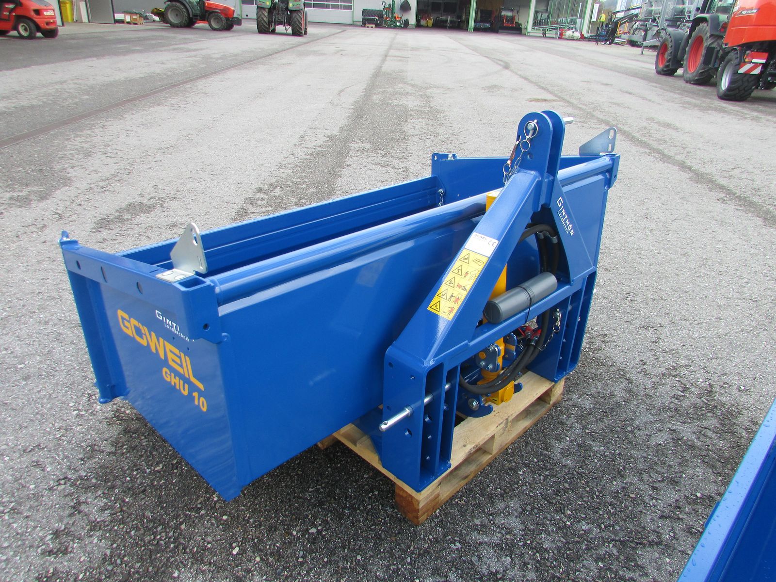 Göweil Hochkippschaufel GHU 10/2200DW + Schaufeltiefe 1m + Schaufelbreite 2,2m + Stirn-/Seitenwände 60cm + Doppelwirkender Teleskopzylinder stehend!! + Dreipunktanbau Kat. I und II + Flacher Schaufelboden mit aufgeschweißter Schürfleiste + Abnehmbare Pendelbordwand Optional mit Schwenkvorrichtung für Pendelbordwand, Euroaufnahme, Steckrungen sofort einsatzbereit sofort verfügbarNutzlast (kg): 3500